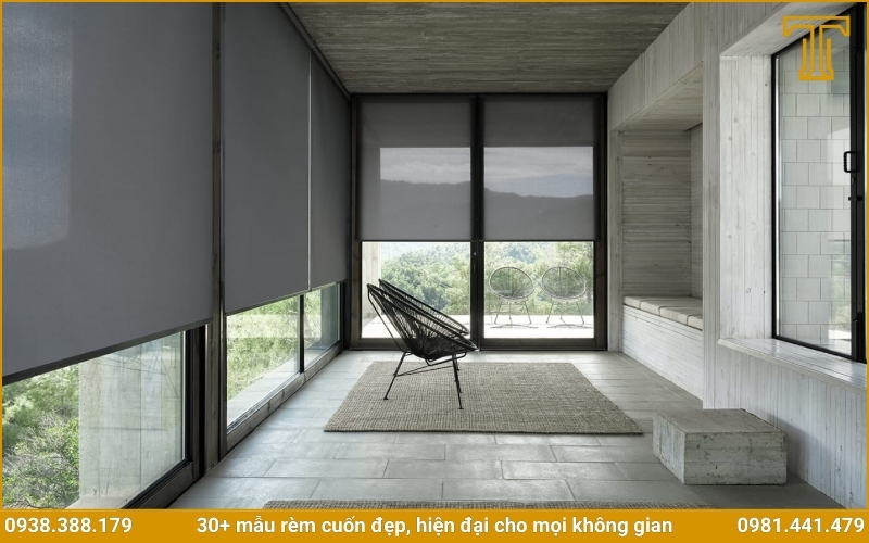 Rèm cuốn màu ghi đậm: Sang trọng, cá tính, phù hợp với phong cách tối giản.