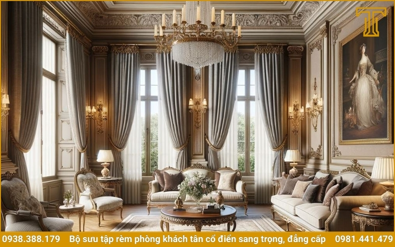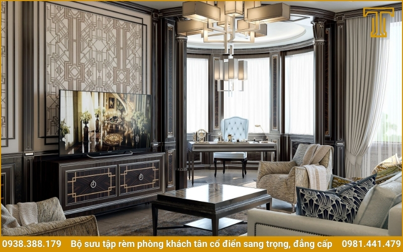 Phòng khách tân cổ điển là sự hòa quyện hoàn hảo giữa nét lãng mạn, sang trọng của kiến trúc cổ điển và đường nét hiện đại tinh tế. Để hoàn thiện không gian sống theo phong cách này, rèm cửa phòng khách tân cổ điển đóng vai trò then chốt. Một bộ rèm cao cấp, được thiết kế riêng biệt, không chỉ làm tròn chức năng che chắn ánh sáng mà còn là một tác phẩm nghệ thuật, mang đến sự ấm cúng, thanh lịch và một vẻ đẹp quý phái, thể hiện gu thẩm mỹ đẳng cấp của gia chủ. Bài viết này sẽ giới thiệu những mẫu rèm tân cổ điển được yêu thích nhất, giúp bạn tìm thấy nguồn cảm hứng để kiến tạo một không gian sống mơ ước.
