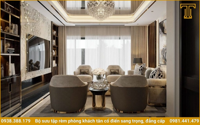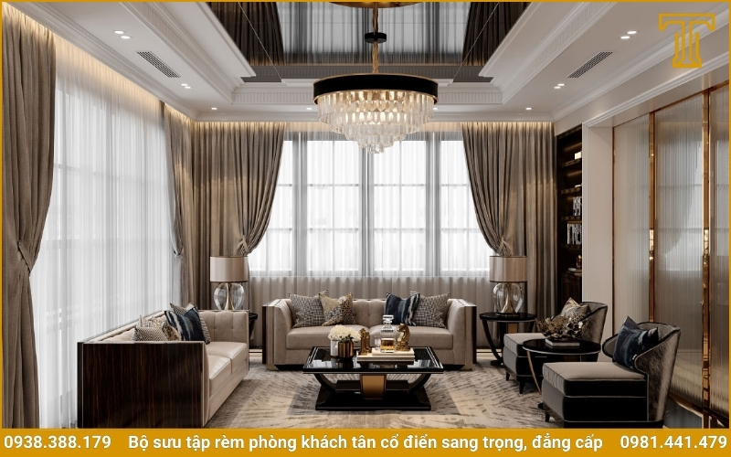 "Rèm cửa tân cổ điển là sự hòa quyện hoàn hảo giữa cổ điển và hiện đại. Lựa chọn rèm cửa phòng khách tân cổ điển chính là cách bạn thể hiện gu thẩm mỹ đẳng cấp và sự tinh tế trong từng chi tiết." – Chuyên gia thiết kế nội thất tại Thanh Tú Decor.