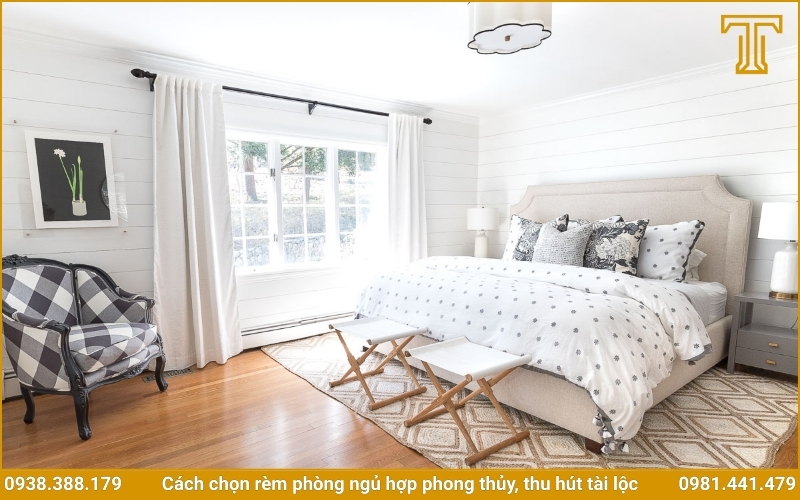 Chất liệu rèm: Nên ưu tiên các loại vải mềm mại, buông rủ tự nhiên. Tránh các chất liệu quá thô cứng hoặc nhiều kim loại, gây cảm giác lạnh lẽo, thiếu ấm cúng.