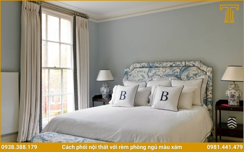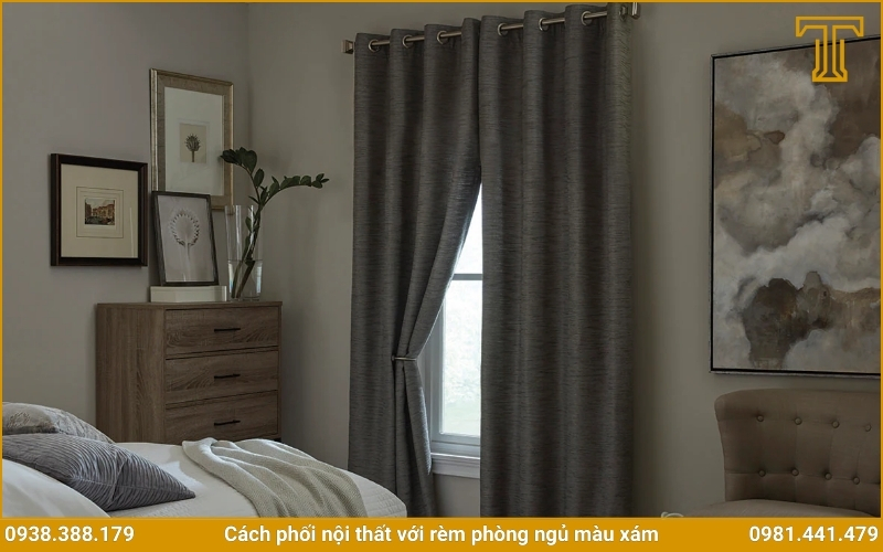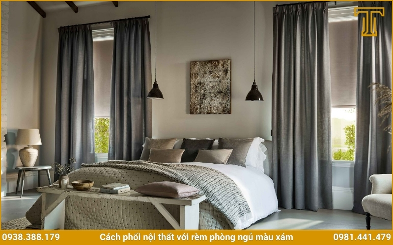 Cách phối nội thất với rèm phòng ngủ màu xám