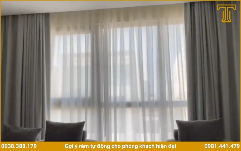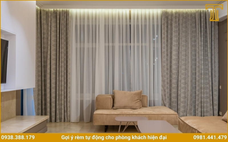 Gợi ý rèm tự động cho phòng khách hiện đại