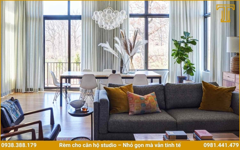 Đối với căn hộ studio, rèm cửa đóng vai trò vô cùng quan trọng, không chỉ về mặt thẩm mỹ mà còn về công năng.