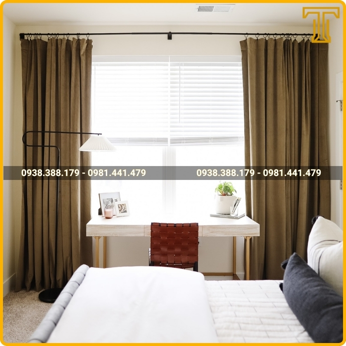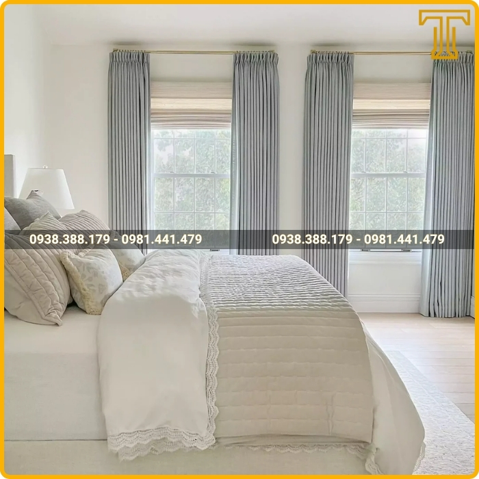 Sự kết hợp của hai lớp vải với chất liệu và màu sắc khác nhau tạo nên chiều sâu và sự sang trọng cho không gian. Lớp voan mỏng nhẹ nhàng mang lại vẻ lãng mạn, tinh tế cho căn phòng vào ban ngày, trong khi lớp vải dày bên ngoài đảm bảo sự riêng tư tuyệt đối vào ban đêm.