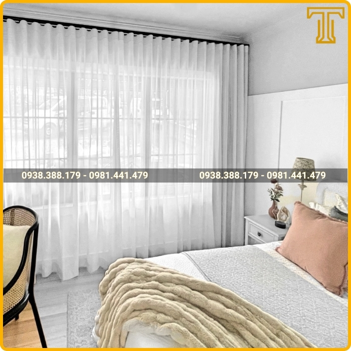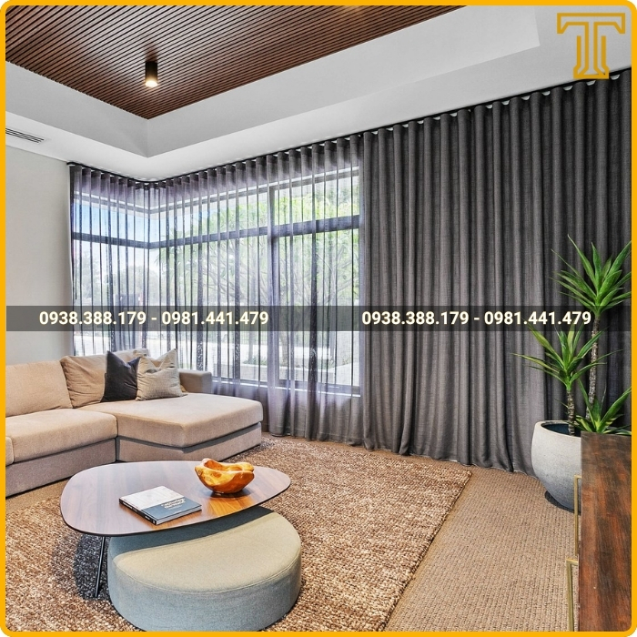 Đây là lựa chọn phổ biến và tối ưu nhất cho phòng ngủ và phòng khách chung cư. Rèm bao gồm một lớp vải dày (vải bố, polyester) có khả năng cách nhiệt tốt và một lớp voan mỏng bên trong để trang trí, làm dịu ánh sáng.