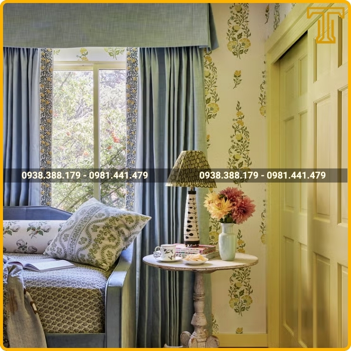 Lắp rèm phủ bì (trùm ra ngoài khung cửa) là lựa chọn hiệu quả để ngăn chặn ánh sáng lọt qua các khe hở và tạo cảm giác không gian rộng hơn.