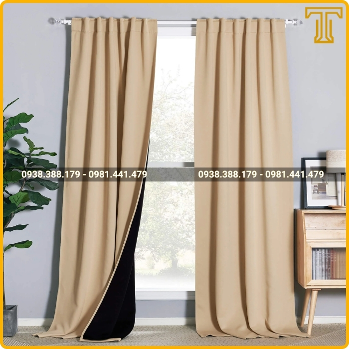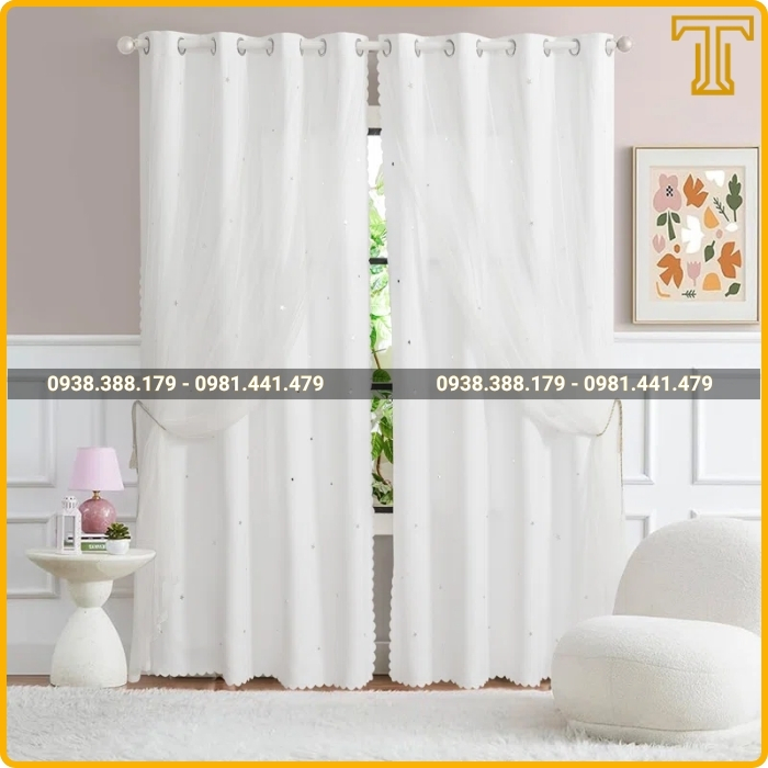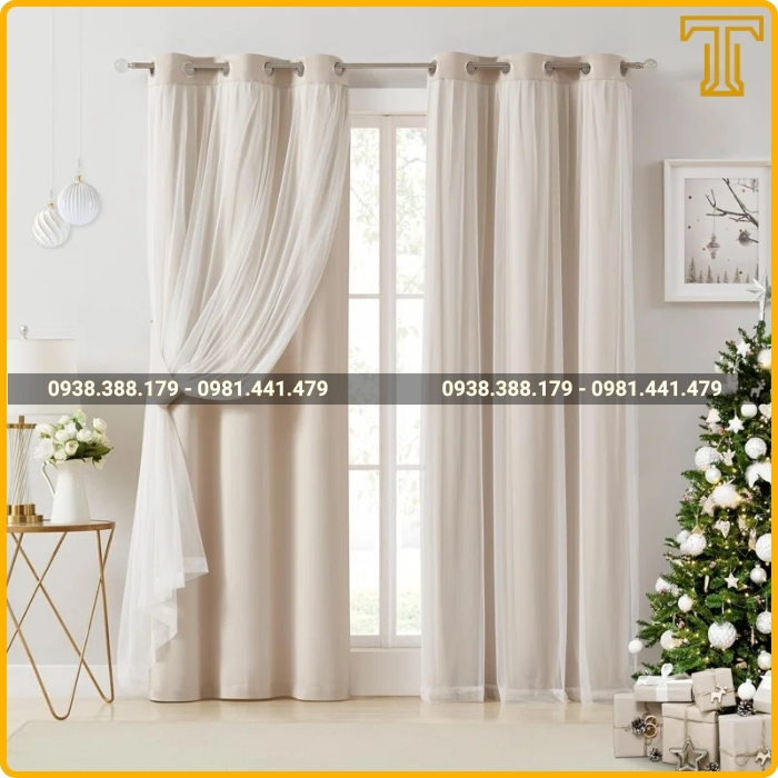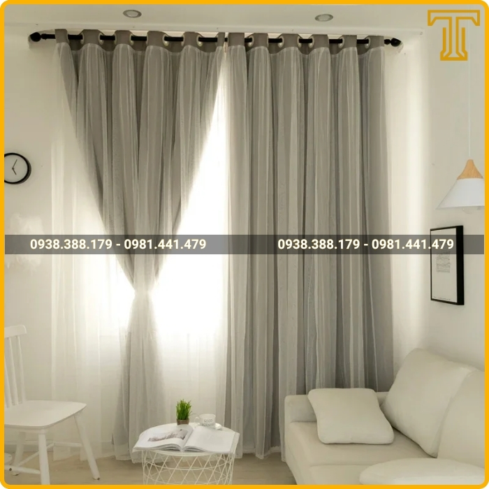 Đây là lựa chọn phổ biến và tối ưu nhất. Rèm bao gồm một lớp vải dày (vải blackout) để cản sáng, chống nắng và một lớp voan mỏng bên trong để trang trí, làm dịu ánh sáng.