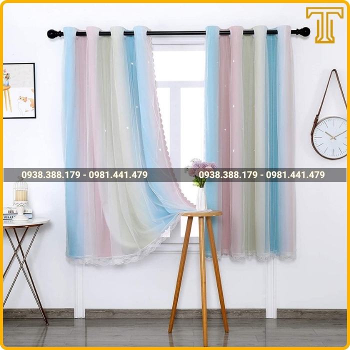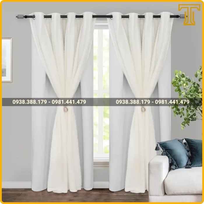 Đây là lựa chọn phổ biến và tối ưu nhất. Rèm bao gồm một lớp vải dày (vải blackout) để cản sáng, chống nắng và một lớp voan mỏng bên trong để trang trí, làm dịu ánh sáng.