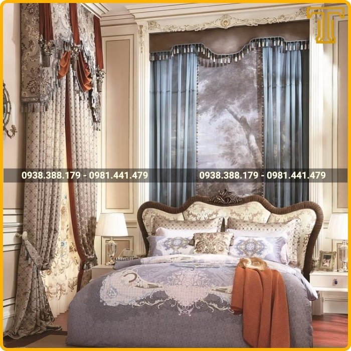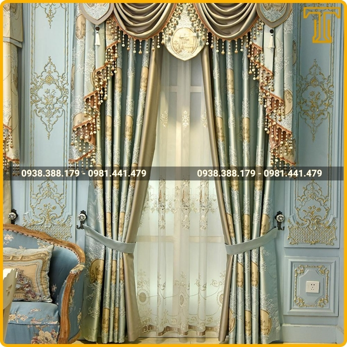 Phong cách cổ điển/tân cổ điển: Nên chọn rèm nhung, lụa hoặc gấm với các gam màu trầm như vàng đồng, xanh rêu, đỏ đô để tăng vẻ lộng lẫy.