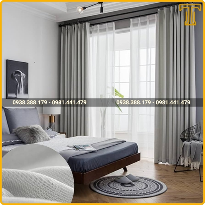 Đây là loại rèm được ưa chuộng nhất cho phòng ngủ. Rèm vải blackout được dệt từ các sợi polyester cao cấp, có mật độ sợi cực dày hoặc tráng thêm một lớp cao su non phía sau, đảm bảo khả năng cản sáng gần như tuyệt đối (95-100%).