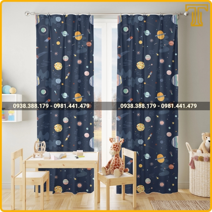 Rèm cửa với màu sắc, họa tiết ngộ nghĩnh, đáng yêu sẽ biến phòng ngủ thành một không gian vui chơi, kích thích trí tưởng tượng của trẻ. Các mẫu rèm in hình nhân vật hoạt hình, bầu trời, vũ trụ, hoặc các loài động vật sẽ làm bé thích thú, giúp bé yêu căn phòng của mình hơn.
