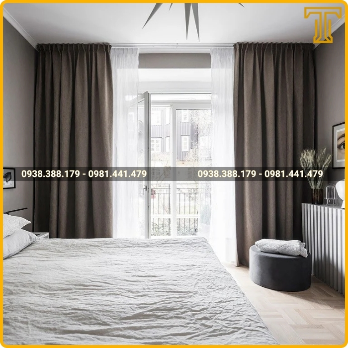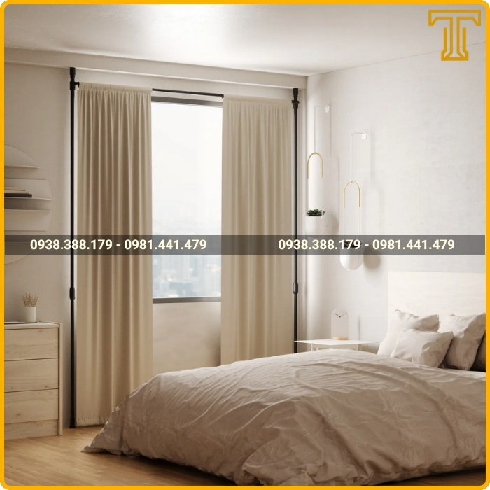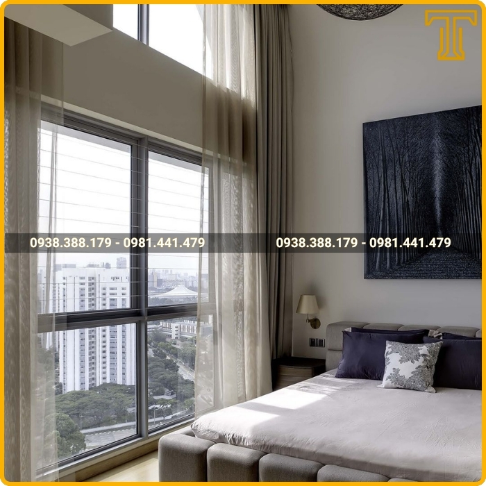 Phòng ngủ chung cư thường có cửa sổ hoặc ban công lớn, đón nhiều ánh sáng tự nhiên. Điều này tuy tốt nhưng cũng có thể gây chói mắt và làm gián đoạn giấc ngủ. Rèm cửa giúp bạn dễ dàng điều chỉnh lượng ánh sáng mong muốn, tạo ra một không gian tối lý tưởng. Đồng thời, rèm còn che chắn hoàn toàn tầm nhìn từ các tòa nhà xung quanh, bảo vệ sự riêng tư tuyệt đối cho bạn.