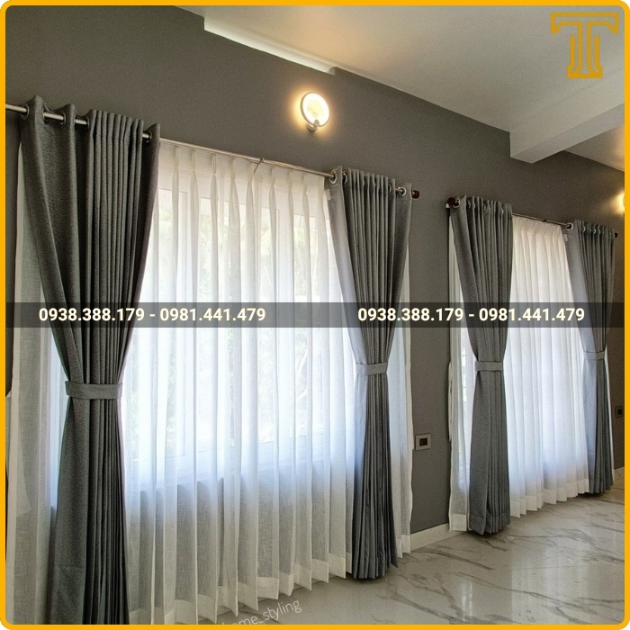 Chất liệu: Vải blackout (cản sáng 100%) là lựa chọn tốt cho lớp dày. Vải voan nên chọn loại mỏng, mềm để có độ rủ đẹp.