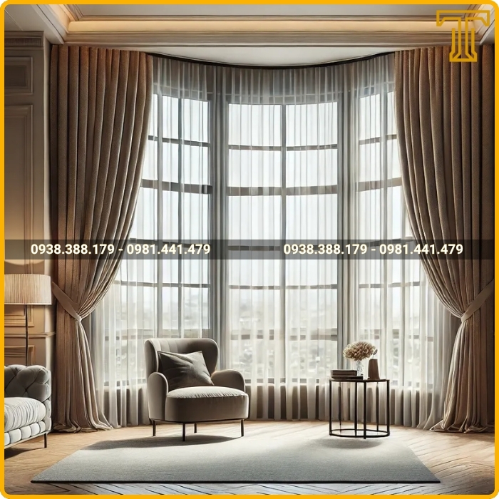 Sự kết hợp của hai lớp vải với chất liệu và màu sắc khác nhau tạo nên chiều sâu và sự sang trọng cho không gian. Rèm 2 lớp có thể dễ dàng phối hợp với mọi phong cách nội thất, từ cổ điển, tân cổ điển đến hiện đại, tối giản. Các nếp gấp mềm mại, độ rủ tự nhiên của rèm sẽ biến khung cửa sổ thành một điểm nhấn tinh tế, hoàn thiện vẻ đẹp tổng thể của căn phòng.