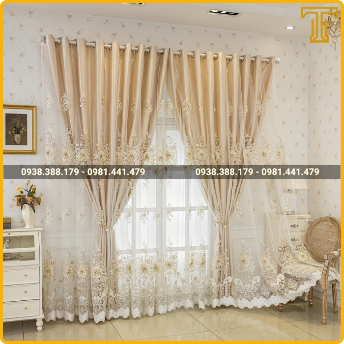 Màu sắc: Nên chọn lớp vải dày có gam màu trung tính, trầm để cản sáng tốt. Lớp voan có thể là màu trắng, kem hoặc các màu pastel để tạo sự nhẹ nhàng, lãng mạn.