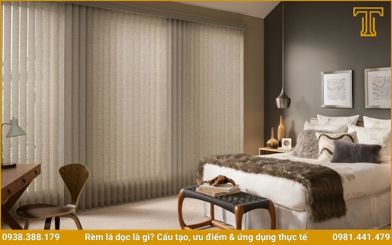 Đối với phòng ngủ, rèm lá dọc giúp bạn có một không gian tối hoàn hảo để ngủ sâu và trọn vẹn. Rèm còn có khả năng cách nhiệt, giữ cho phòng ngủ luôn mát mẻ vào mùa hè.