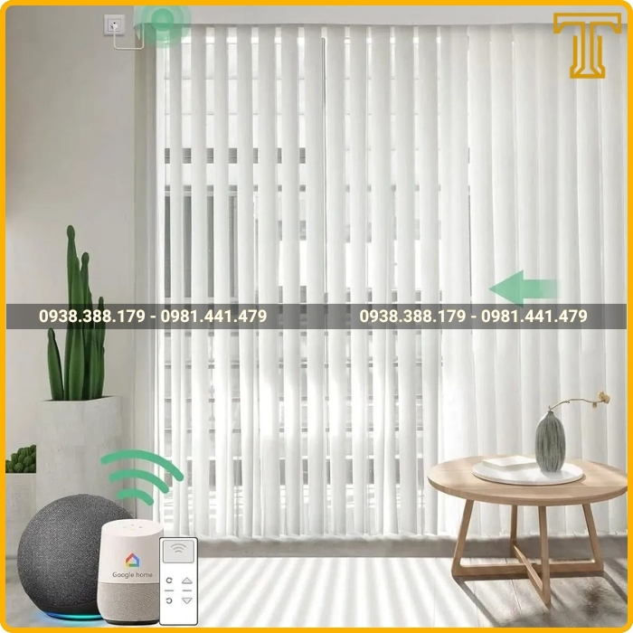 Để tăng thêm sự tiện nghi và đẳng cấp, rèm lá dọc tự động là lựa chọn không thể bỏ qua. Rèm được trang bị motor và hệ thống điều khiển từ xa, giúp bạn dễ dàng điều chỉnh rèm chỉ bằng một nút bấm trên remote, điện thoại hoặc ra lệnh bằng giọng nói.