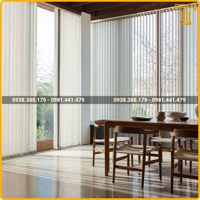 Rèm lá dọc có cấu tạo đơn giản, hoạt động theo cơ chế xoay lật các lá rèm, không chiếm nhiều diện tích. Điều này đặc biệt phù hợp với những căn hộ chung cư có diện tích khiêm tốn. Vẻ ngoài thanh lịch, buông thẳng của rèm lá dọc cũng dễ dàng hài hòa với mọi phong cách thiết kế nội thất, từ hiện đại đến tối giản.