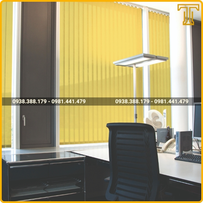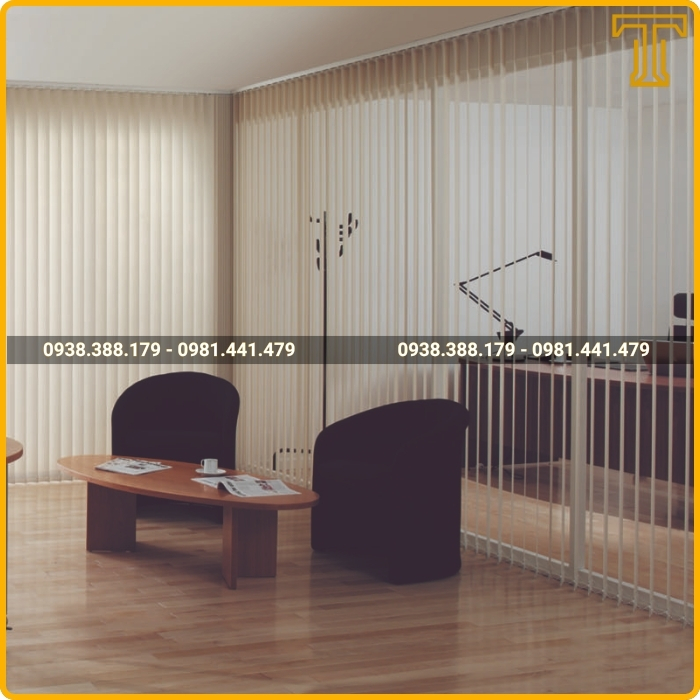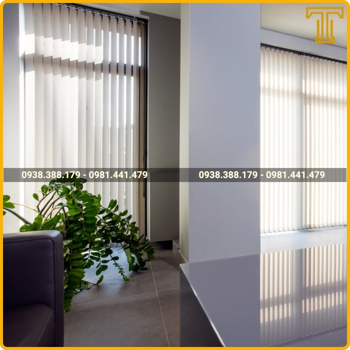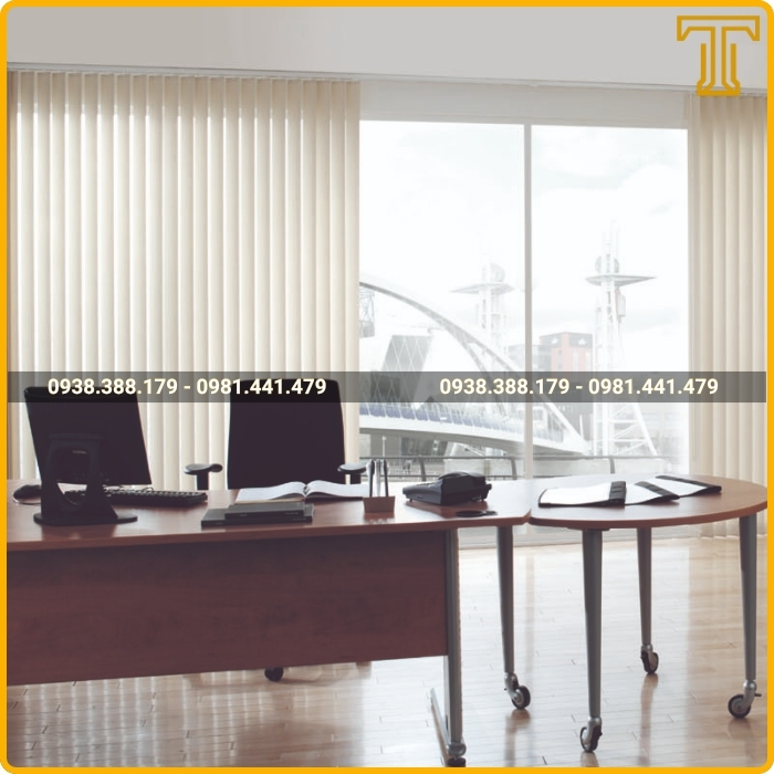 Rèm lá dọc có vẻ ngoài thanh lịch, chuyên nghiệp với các lá rèm buông thẳng. Rèm không chỉ phù hợp với các ô cửa sổ nhỏ mà còn là lựa chọn hoàn hảo cho các cửa kính lớn, vách kính của phòng họp. Sự đa dạng về màu sắc cũng giúp rèm lá dọc dễ dàng hài hòa với mọi phong cách thiết kế, tạo nên một không gian làm việc sang trọng và tinh tế.