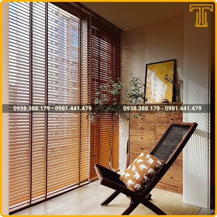 Một trong những ưu điểm lớn nhất của rèm sáo gỗ là khả năng điều chỉnh ánh sáng một cách linh hoạt. Bạn có thể xoay lật các lá gỗ 180 độ để kiểm soát lượng ánh sáng đi vào phòng. Khi cần không gian tối hoàn toàn để ngủ, bạn chỉ cần đóng kín các lá rèm. Ngược lại, vào ban ngày, bạn có thể mở nhẹ các lá rèm để ánh sáng lọt vào dịu nhẹ, tạo cảm giác thông thoáng mà vẫn đảm bảo sự riêng tư.