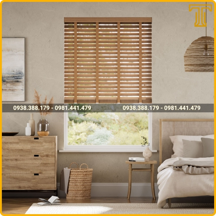 Một trong những ưu điểm lớn nhất của rèm sáo gỗ là khả năng điều chỉnh ánh sáng một cách linh hoạt. Bạn có thể xoay lật các lá gỗ 180 độ để kiểm soát lượng ánh sáng đi vào phòng. Khi cần không gian tối hoàn toàn để ngủ, bạn chỉ cần đóng kín các lá rèm. Ngược lại, vào ban ngày, bạn có thể mở nhẹ các lá rèm để ánh sáng lọt vào dịu nhẹ, tạo cảm giác thông thoáng mà vẫn đảm bảo sự riêng tư.