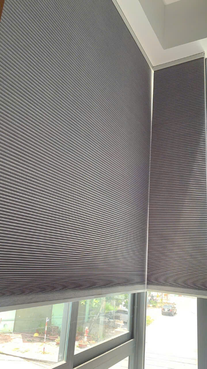 Rèm tổ ong tự động mang lại sự tiện lợi tối đa và phù hợp đặc biệt với những không gian mà hệ kéo dây khó đáp ứng được.