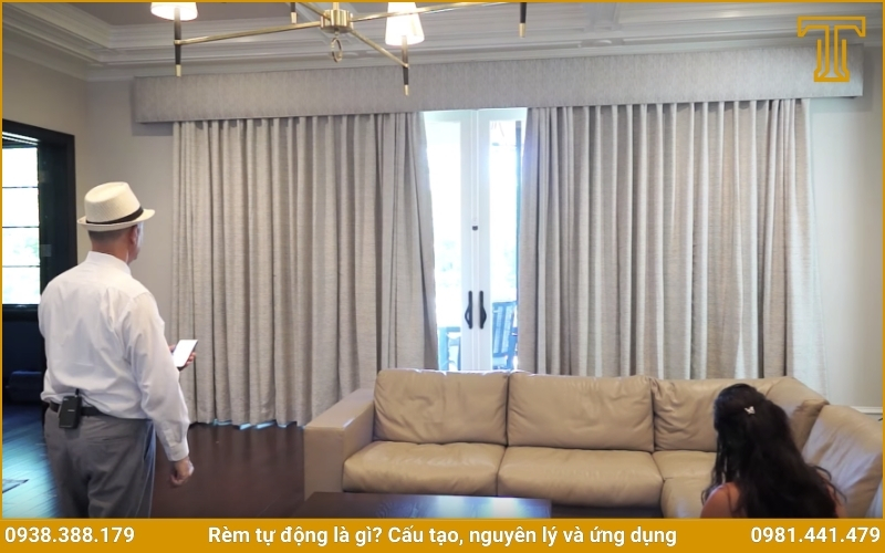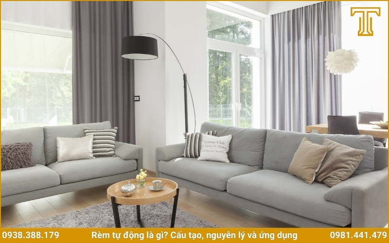 Phòng khách: Điều khiển rèm tự động giúp bạn dễ dàng điều chỉnh ánh sáng khi xem phim, tiếp khách hoặc thư giãn. Rèm tự động còn thể hiện sự đẳng cấp của ngôi nhà.