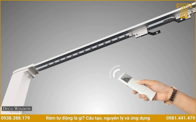 Hệ thống điều khiển: Gồm remote, công tắc âm tường hoặc bộ điều khiển trung tâm (hệ thống nhà thông minh). Bạn có thể điều khiển rèm từ xa bằng remote, hoặc thông qua ứng dụng trên điện thoại, máy tính bảng.