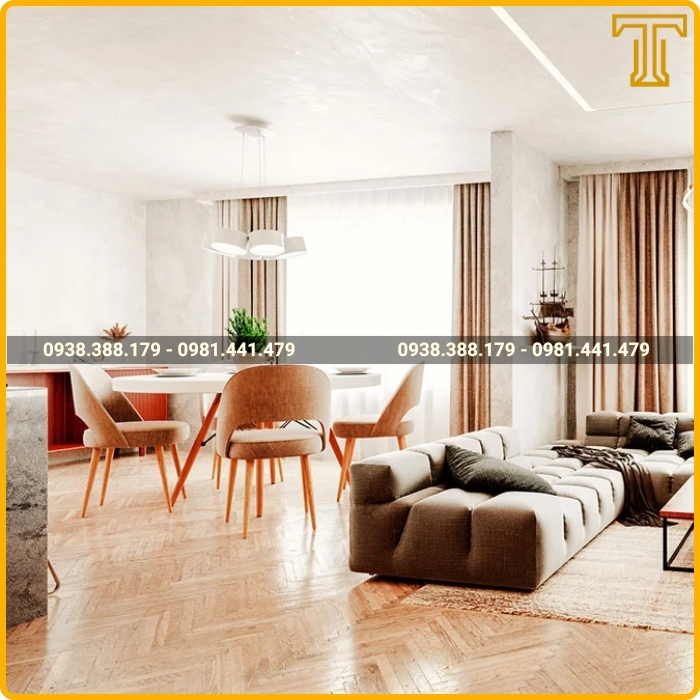 Với cấu trúc dày dặn, rèm vải đóng vai trò như một lớp cách nhiệt, giúp ngăn nhiệt độ từ bên ngoài, giữ cho căn hộ luôn mát mẻ vào mùa hè và ấm áp vào mùa đông, từ đó tiết kiệm đáng kể chi phí điện năng. Ngoài ra, rèm vải còn có khả năng hấp thụ âm thanh, giảm tiếng ồn từ môi trường đô thị, mang lại không gian yên tĩnh, thư thái.