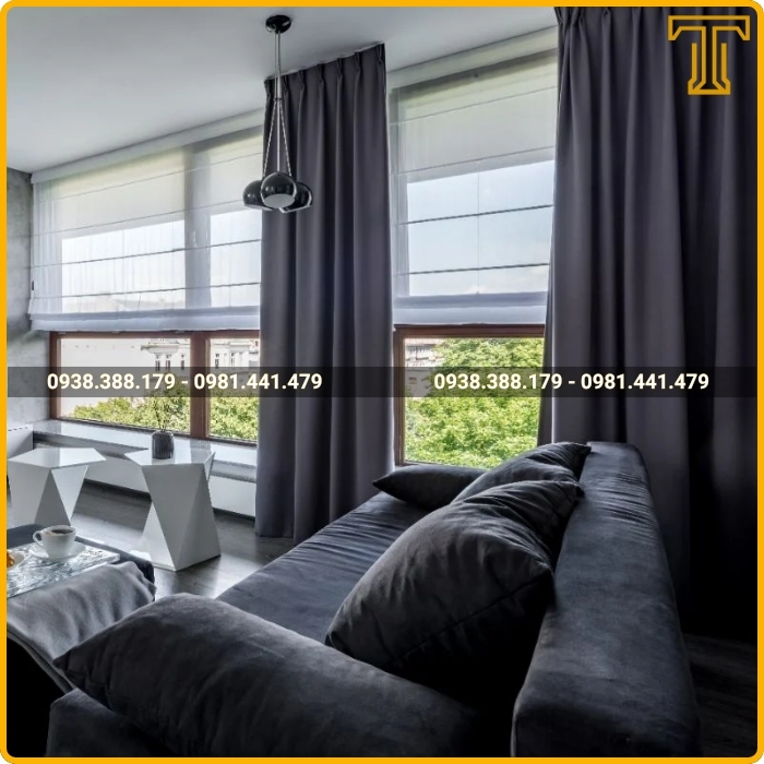 Đây là lựa chọn phổ biến và tối ưu nhất. Rèm bao gồm một lớp vải dày (vải blackout) để cản sáng, chống nắng và một lớp voan mỏng bên trong để trang trí, làm dịu ánh sáng.