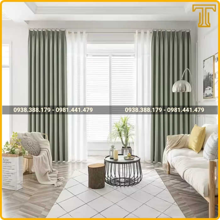 Chất liệu: Chọn chất liệu vải có khả năng cản sáng, cách nhiệt tốt như polyester, vải bố, hoặc các loại vải cao cấp khác để đảm bảo công năng tối ưu cho phòng khách.
